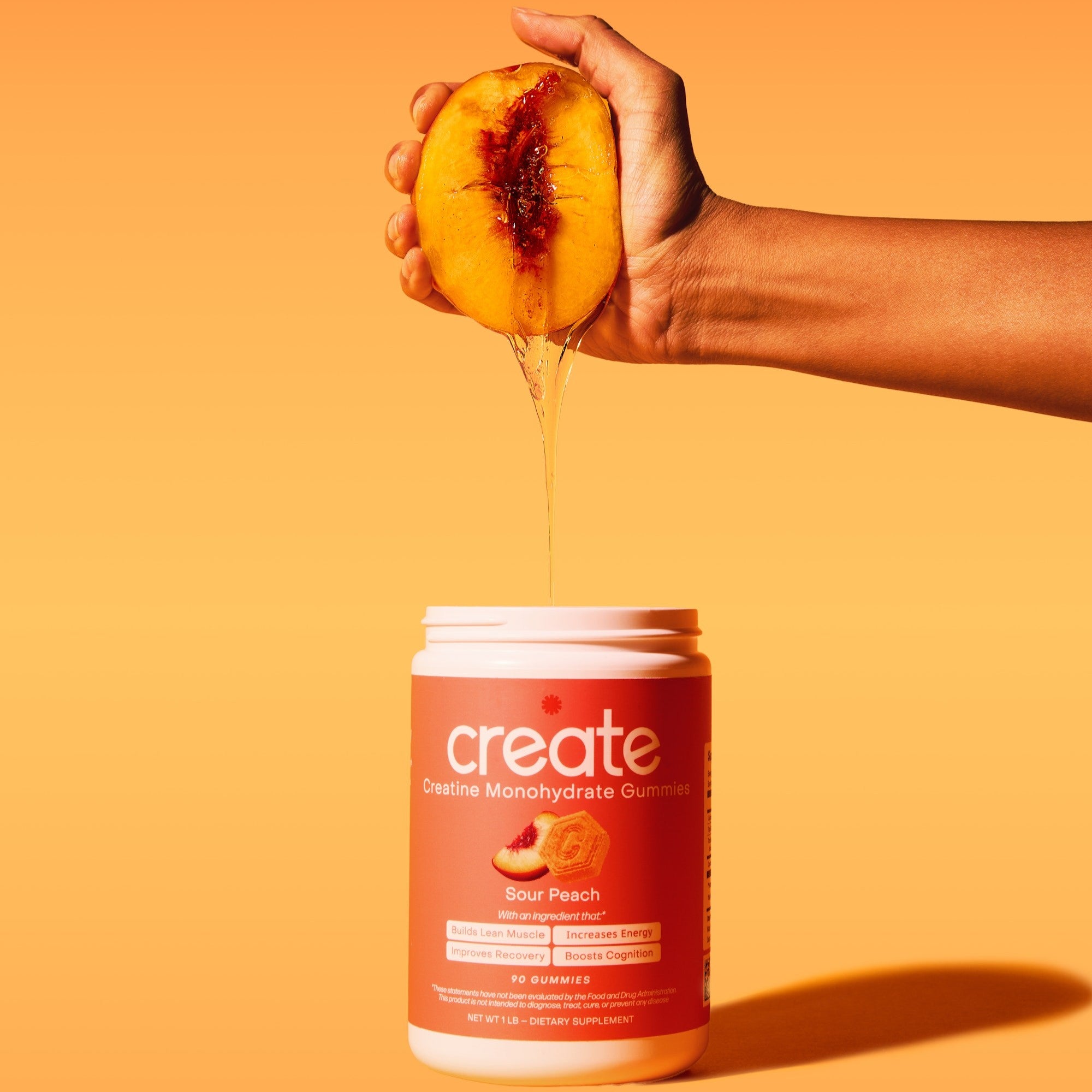 Core Gummies - Sour Peach: Creatine Monohydrate, Tapioca Syrup, Sugar, Allulose, Reverse Osmosis Water, Pectin, Natural Peach Flavor, Natural Yellow Color, Natural Red Color, Citric Acid, Malic Acid