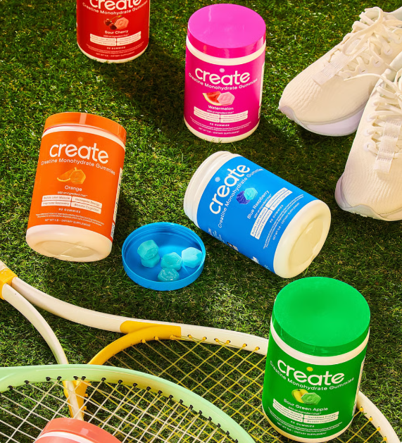 Level up with the Ultimate Starter Bundle, a complete six-month supply of Create Creatine Gummies in all six crave-worthy flavors. Inside you’ll get one tub each of: Sour Green Apple, Blue Raspberry, Watermelon, Orange, Sour Cherry, and the brand-new Sour Peach.